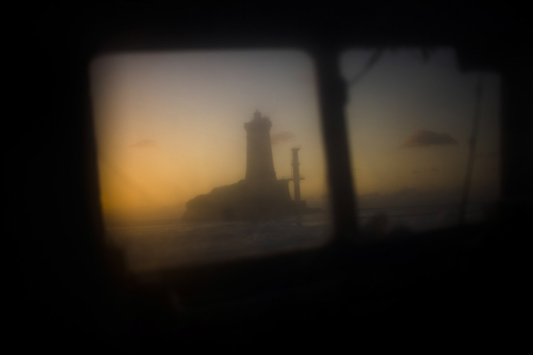 Bretagne, Audierne. Phare de la Vieille à la Pointe du Raz depuis l’embarcation d’Eric Leguyader